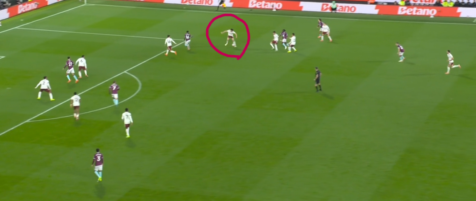 그러다 중앙 쪽으로 포지션을 이동하더니, 공격수가 된 것 마냥 오프더 볼 움직임을 가져간다.