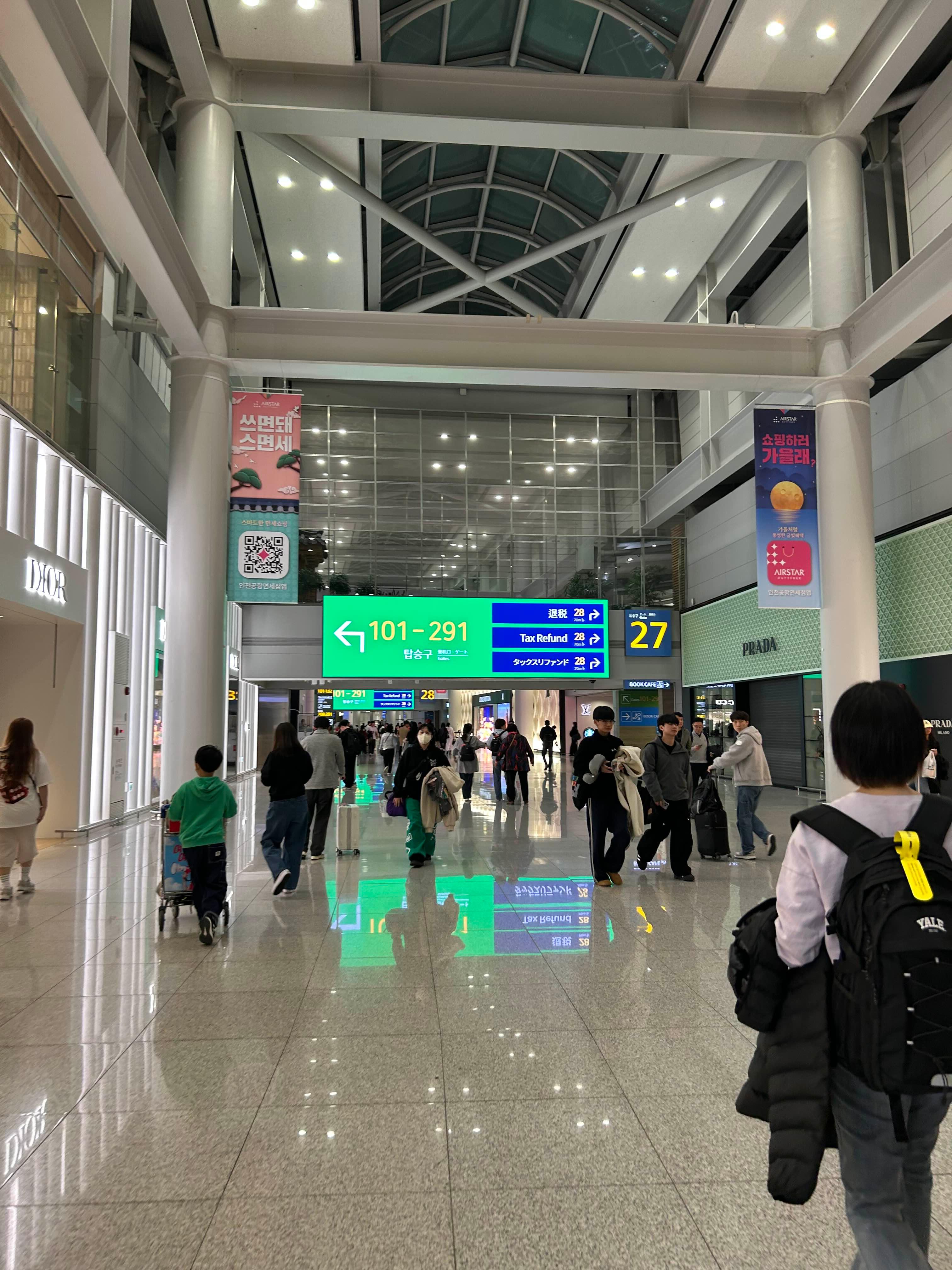 탑승구는 101번이었는데 무지하게 걸어야 했다. 인천 1터미널에서도 극단에 있는데다가, 반층 정도를 에스컬레이터로 더 내려갔다. 생각보다 줄이 길어서 라스트 콜 직전에야 탈 수 있게 되었다. 그리곤 다시 기절 😴